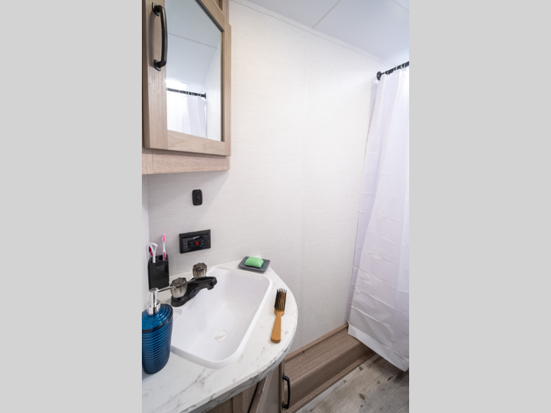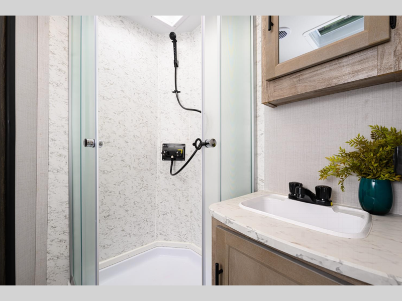 Sleeps 4 Length 27 ft 4 in Ext Width 8 ft Ext Height 9 ft 10 in Int Height 6 ft 8 in Hitch Weight 478 lbs Dry Weight 4031 lbs Cargo Capacity 3487 lbs Fresh Water Capacity 30 gals Grey Water Capacity 36 gals Black Water Capacity 36 gals Tire Size 14" Furnace BTU 20000 btu Available Beds Queen LP Tank Capacity 20 lbs Water Heater Type Tankless AC BTU 13500 btu Axle Count 2 Number of LP Tanks 2 Shower Type Standard Electrical Service 30 amp Similar Floorplans