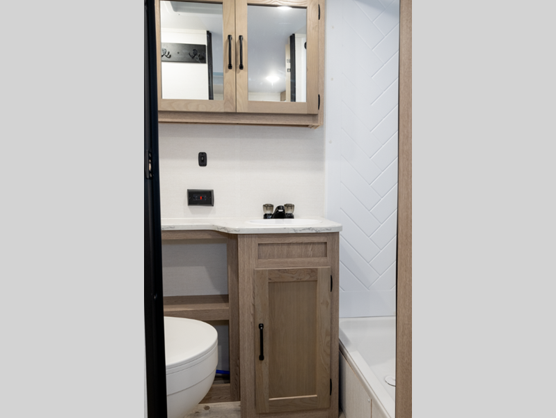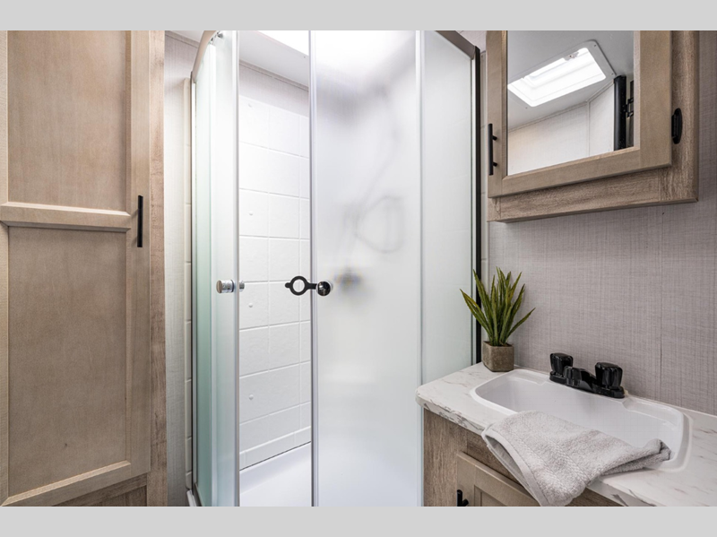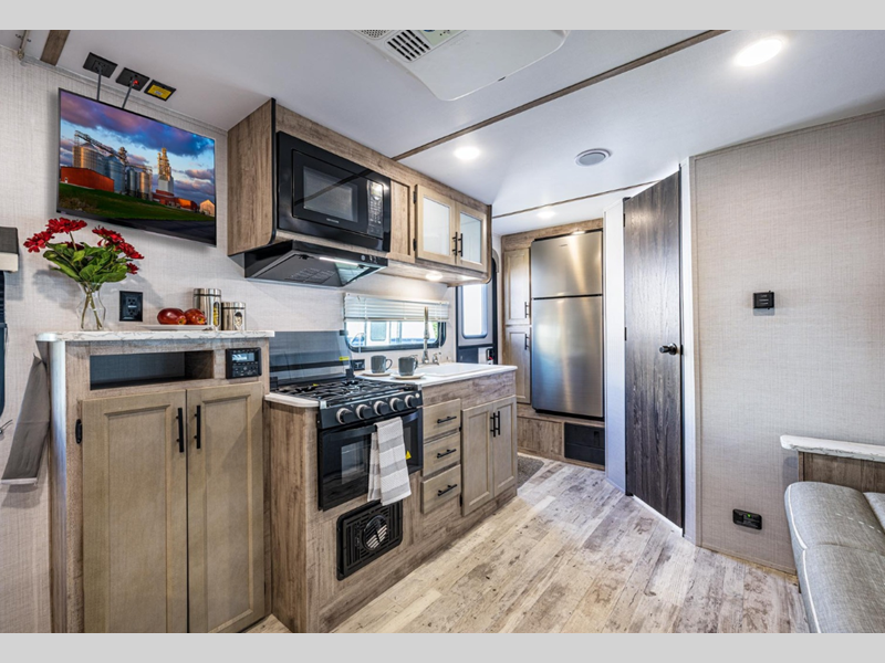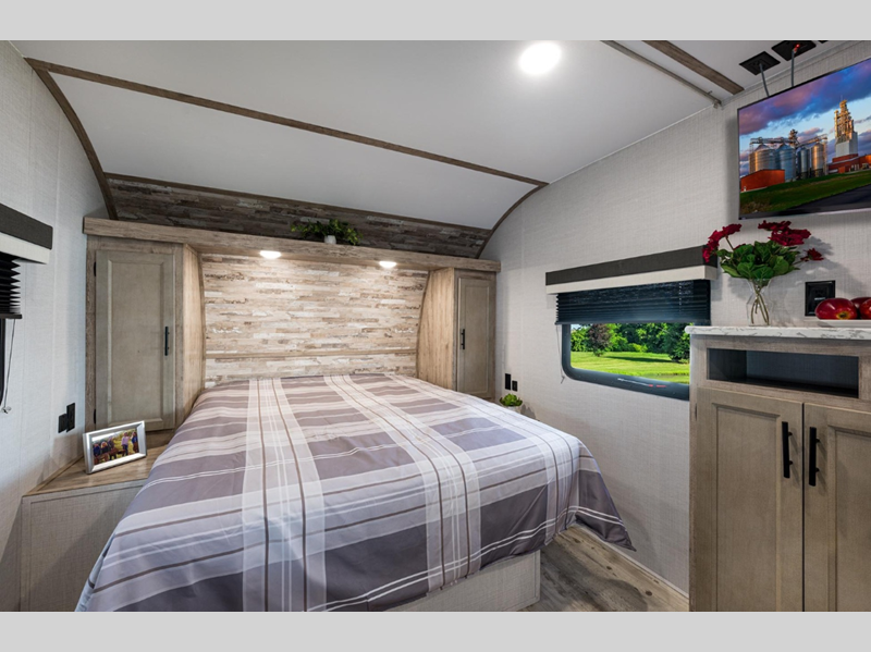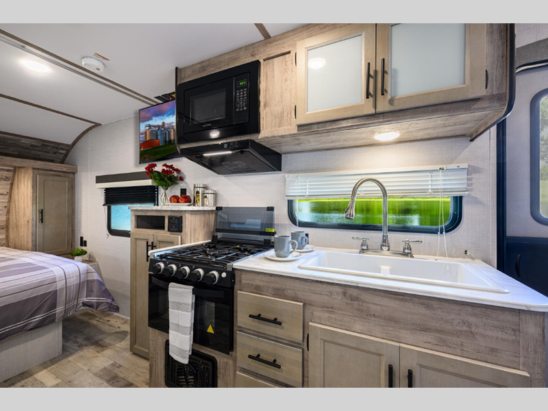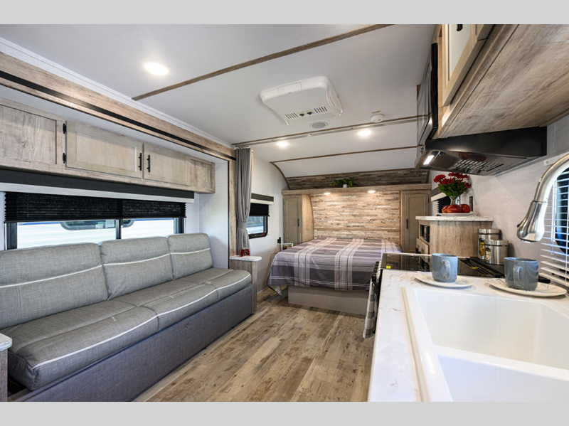 These travel trailers feature unibody construction with steel hurricane straps, securely tying walls to roof and floor for unparalleled strength and stability. Each unit is equipped with 30-amp service, a 45-amp converter, and a charger, ensuring reliable power on the go. Inside, you'll discover craft-made cabinetry with beautiful hardwood cabinet doors and mortise and tenon joints, showcasing exceptional craftsmanship, and many other features.
