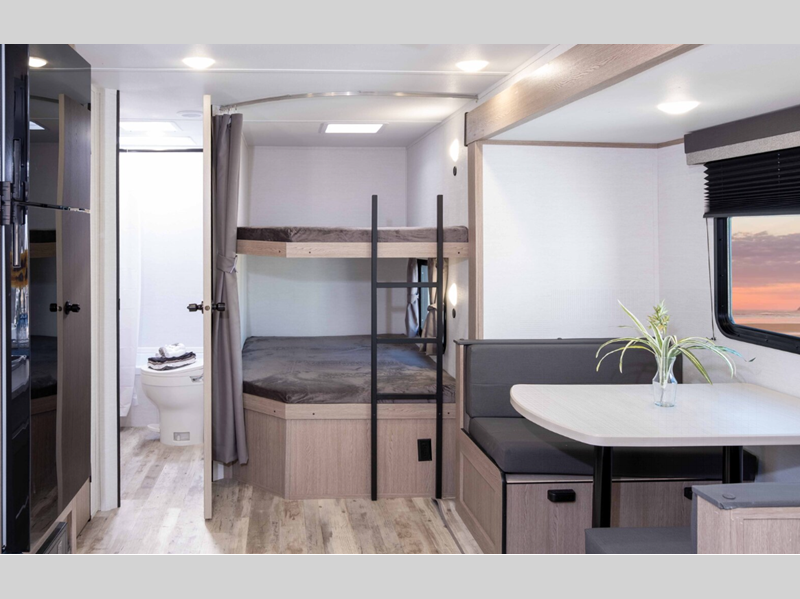 Sleeps 8 Slides 1 Length 29 ft 11 in Ext Width 8 ft Ext Height 11 ft 1 in Int Height 6 ft 8 in Hitch Weight 670 lbs Dry Weight 5460 lbs Cargo Capacity 2210 lbs Fresh Water Capacity 23 gals Grey Water Capacity 33 gals Black Water Capacity 34 gals Tire Size 14" Furnace BTU 20000 btu Number Of Bunks 2 Available Beds Queen LP Tank Capacity 20 lbs Water Heater Type Tankless AC BTU 13500 btu Axle Count 2 Number of LP Tanks 2 Shower Type Tub/Shower Combo Electrical Service 30 amp Similar Floorplans