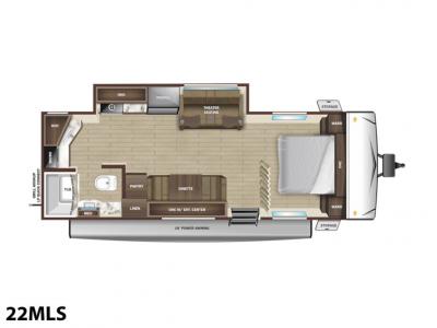 Sleeps 3 Slides 1 Length 27 ft 5 in Ext Width 8 ft Ext Height 11 ft 2 in Int Height 6 ft 9 in Interior Color Sandy Grey Hitch Weight 480 lbs GVWR 6995 lbs Dry Weight 5265 lbs Cargo Capacity 1730 lbs Fresh Water Capacity 76 gals Grey Water Capacity 40 gals Black Water Capacity 40 gals Tire Size ST205/75R14D Furnace BTU 30000 btu Refrigerator Type 12V Refrigerator Size 8 cu ft Cooktop Burners 3 Number of Awnings 1 LP Tank Capacity 30 lbs Water Heater Capacity 6 gal Water Heater Type Gas/Electric AC BTU 13500 btu Awning Info 18' Power with LED Lights Axle Count 2 Number of LP Tanks 2 Shower Type Tub/Shower Combo Similar Travel Trailer Floorplans