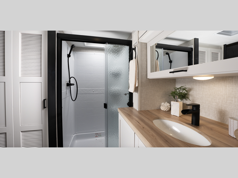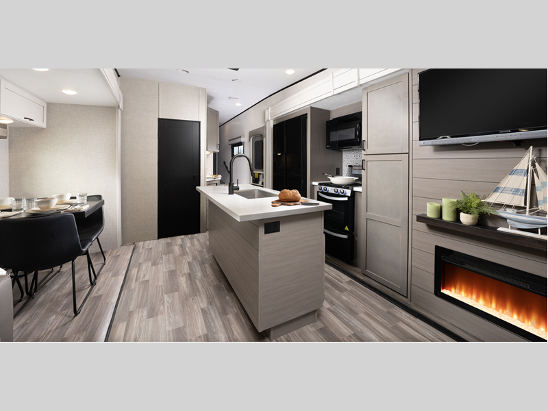 Sleeps 4 Slides 3 Length 32 ft 8 in Ext Width 8 ft 4 in Ext Height 12 ft 5 in Int Height 8 ft 6 in Interior Color Washed Driftwood Hitch Weight 1790 lbs GVWR 11800 lbs Dry Weight 9735 lbs Cargo Capacity 2065 lbs Fresh Water Capacity 75 gals Grey Water Capacity 97 gals Black Water Capacity 40 gals Tire Size ST235/80R16'E Furnace BTU 30000 btu Available Beds Queen Refrigerator Type 12V Refrigerator Size 17 cu ft Cooktop Burners 3 Number of Awnings 1 LP Tank Capacity 20 lbs. Water Heater Capacity 6 gal Water Heater Type Quick Recovery Gas/Electric AC BTU 15000 btu TV Info LR 40" Smart HDTV Awning Info 16' Power with LED lighting Axle Count 2 Washer/Dryer Available Yes Number of LP Tanks 3 Shower Type Standard Electrical Service 50 amp Solar Wattage 200 watts Similar Floorplans