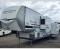 One look at this fifth wheel and you'll be sold! You can wake up each morning in the master bedroom that includes a custom king bed and a dresser with an ottoman. The front full bath has two bath sinks so you both can get ready at once, and you're going to love the walk-in wardrobe with wrap-around hanging rod. A half bath includes a floating shelf with a hanging rod plus washer/dryer prep, giving you the option to make this a laundry room! The back of this unit is where you can cook meals with full kitchen amenities, dine at the kitchen island with four chairs, and relax on the theater seating and tri-fold sofa. A 50" TV and fireplace is also found here, complete with hidden storage behind for board games, movies, and snacks!